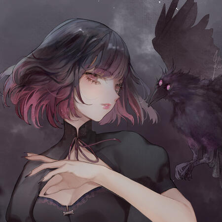 Quoth is a warlock who has formed a pact with Abaddon in exchange for her magic. She is cruel and unrelenting when it comes to combat and is willing to use any means necessary to win. Quoth may look sweet but looking at her funny may put you on the news.Quoth's magic consists of black and purple electricity, although she rarely uses her magic for any means other than serious combat. The majority of Quoth's combat is done through her familiar.Quoth's raven familiar Poe was bestowed onto her by Abaddon as part of her pact. Poe is with her constantly and does the majority of minor combat. He is also her connection to her patron as she can speak freely between realms using Poe as a conduit. As combat progresses, Quoth becomes more likely to use her own magic, if it continues to escalate she will summon Nevermore.To summon Nevermore Quoth must transmute Poe into his new "form". This is only used in dire situations as Nevermore will remove any and all autonomy from Quoth. Quoth becomes Nevermore's senses, his eyes and ears, and will perform according to his will. Nevermore is a creature of pure destruction and will destroy with reckless abandon. Quoth may only return to her senses if Nevermore decides he is no longer needed, this will render the form lifeless until Quoth returns to transmute her familiar back to Poe.