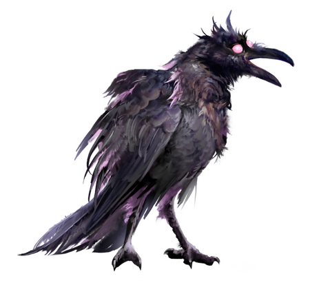 ✧ Ruthless Three-Eyed Raven ✧Poe is Quoth's only friend and her connection to her patron. Poe takes the form of a raven but make no mistake, he is not from this plane. Poe is a demon shapeshift bound to Quoth, and takes the form she prefers as he is indifferent. Poe performs most combat for Quoth with his razorsharp beak and talons. He is also capable of letting out cries that send incapaciting sonic booms through the area.